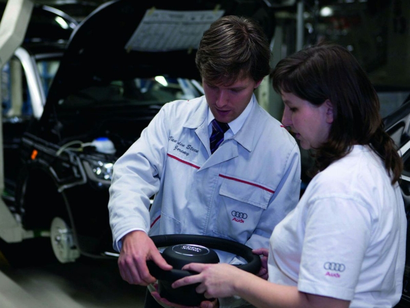 К сожалению, не удалось увидеть всё, что хотелось. На фотографиях представлен завод по сборке Audi A1 в Бельгии, на которых можно видеть инженеров за работой.