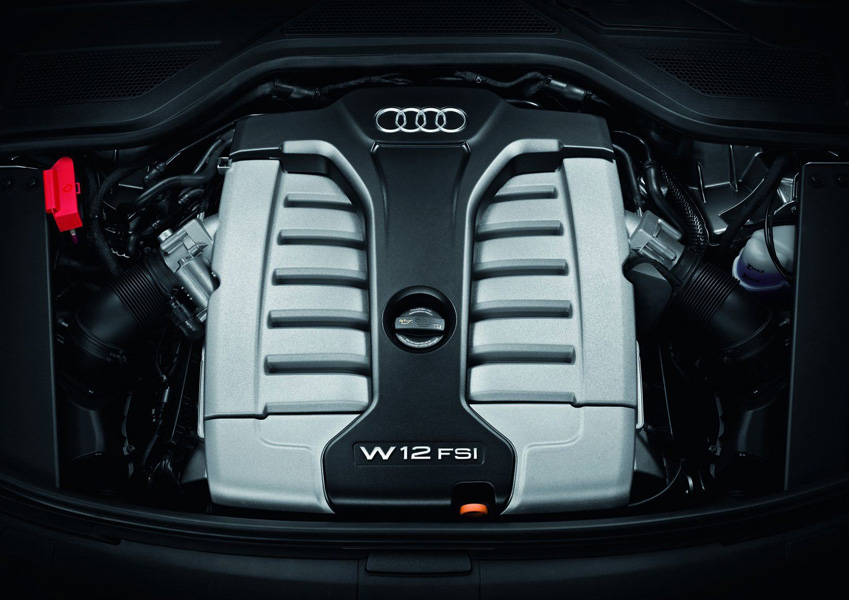 Основанный на 6-литровом двигателе, который был установлен на прошлых моделях А8, W12 был полностью пересмотрен. Объём теперь увеличен до 6.3 литра и добавлен прямой впрыск топлива. Вес двигателя составляет 247 кг, а мощность достигла 493 л.с. и 625 нм вращающего момента при 3250 оборотах. Все четыре ведущих колеса плюс 8-скоростная коробка передач Tiptronic разгоняют автомобиль до 100 км/ч всего за 4.9 секунды. Максимальная скорость ограничена 250 км/ч. Потребление топлива составляет 12 литров на 100 км - довольно скромно для такого двигателя.