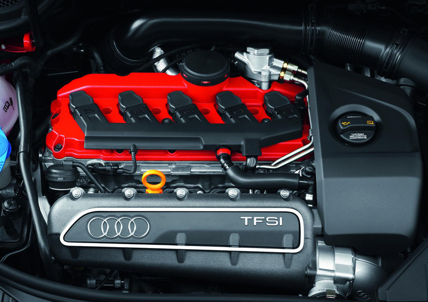 Что касается двигателя, то здесь Audi остались верны турбированному 2.5-литровому пятициллиндровому 335-сильному двигателю, который устанавливается на TT-RS и обладает 450 нм вращающего момента. Двигатель соединён с платформой quattro, передающей мощь на все четыре колеса через семиступенчатую коробку передач S-троник. Такая комбинация позволяет 1575 килограммовому автомобилю ускоряться до 100 км/ч всего за 4.6 секунды и развивать максимальную скорость в 250 км/ч (дальнейшему ускорению препятсвует электронный ограничитель). Расход топлива довольно значительный для такого автомобиля - 9.1 л/100км, а эмиссия СО2 составляет 212 г/км.