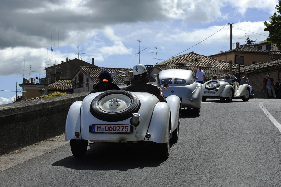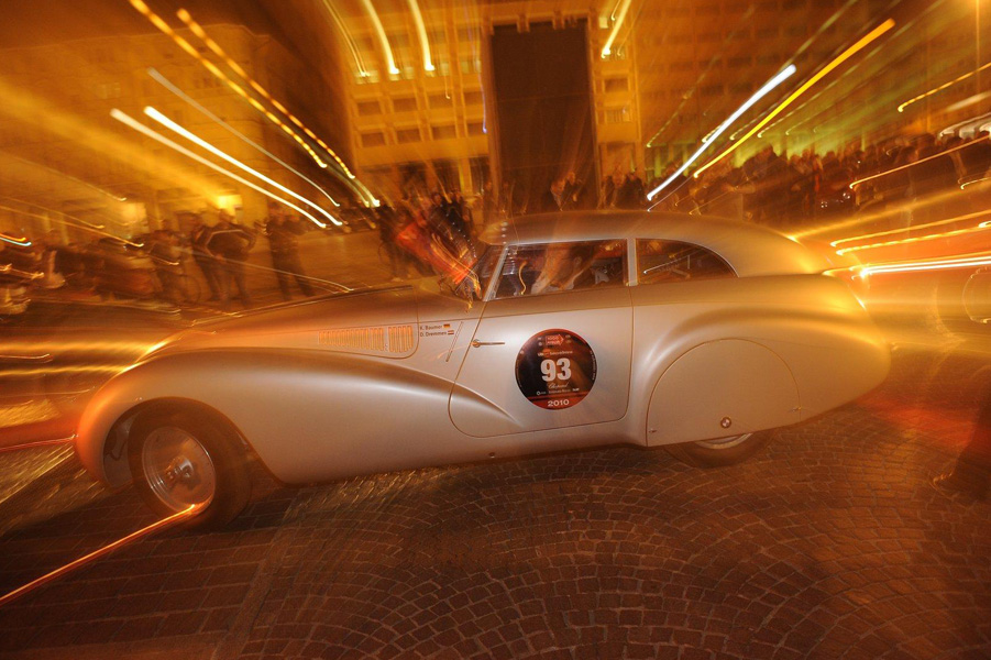 Спустя 70 лет после первой победы, BMW 328 Touring Coupé снова первый в гонке 2010 года Mille Miglia.