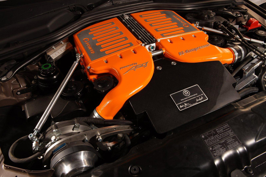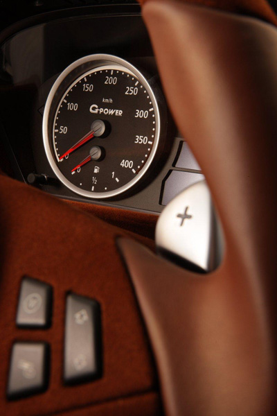 Такую мощность можно развить за счёт системы G-Power SK IIII RS, которая предусматривает установку двух суперкомпрессоров и интеркулера с водяным охлаждением. А ещё G-Power заменили стандартные поршни на поршни Mahle и перепрограммировали компьютер ECU.
