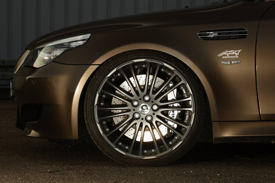 Чтобы не вылететь с дороги и направить мощность в нужное русло, автомобиль поставили на 20-дюймовые диски G-Power Silverstone Diamond с шинами MICHELIN Pilot Sport 255/35 ZR 20 спереди и 285/30 ZR 20 сзади. Тюнинг подвески состоял в установке амортизаторов G5-RS с регулируемым уровнем давления, отдачи и высоты. И, наконец, тормозная система G-Power.