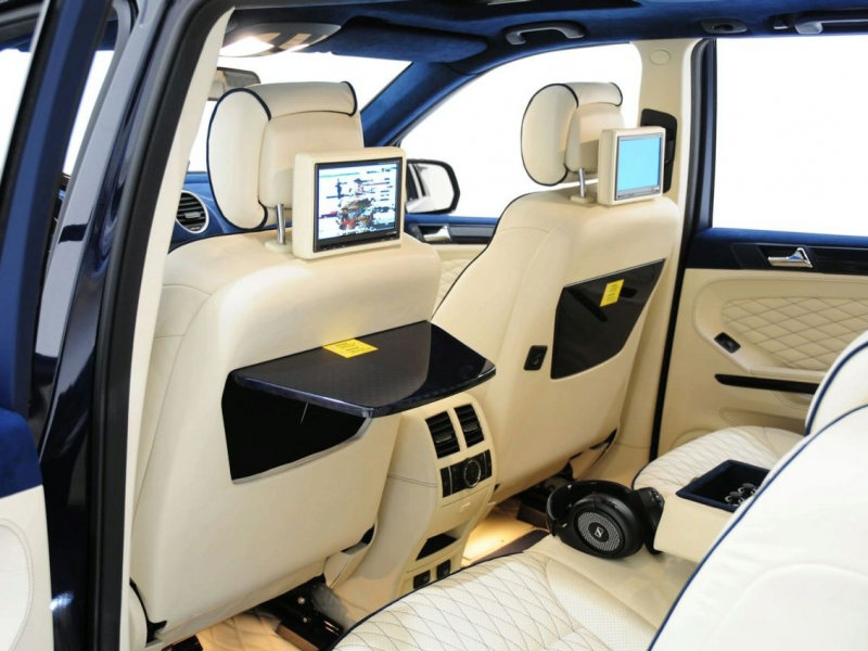 Интерьер выполнен из углеродистого волокна, кожи Mastik и Alcantara. 7-дюймовый экран LCD позади каждого переднего места, DVD-плеер и бортовой персональный компьютера с быстрой интернет-связью дополняют завершают комплектацию от Брабус.