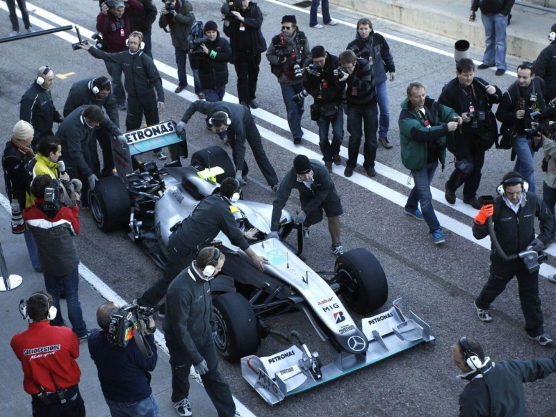 В Валенсии прошёл испытательные тесты новый болид Mercedes. Mercedes MGP W01 - дальнейшая эволюция модели Brawn, побеждавшей в 2009 году. Эволюция затронула передний V-образный обтекатель, который улучшает сцепление автомобиля с трассой.