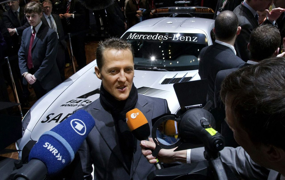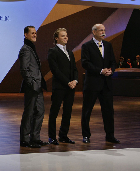 Mercedes решили представить публике SLS AMG F1 и поручили это Michael Schumacher и Nico Rosberg.
