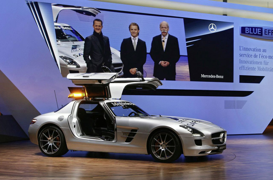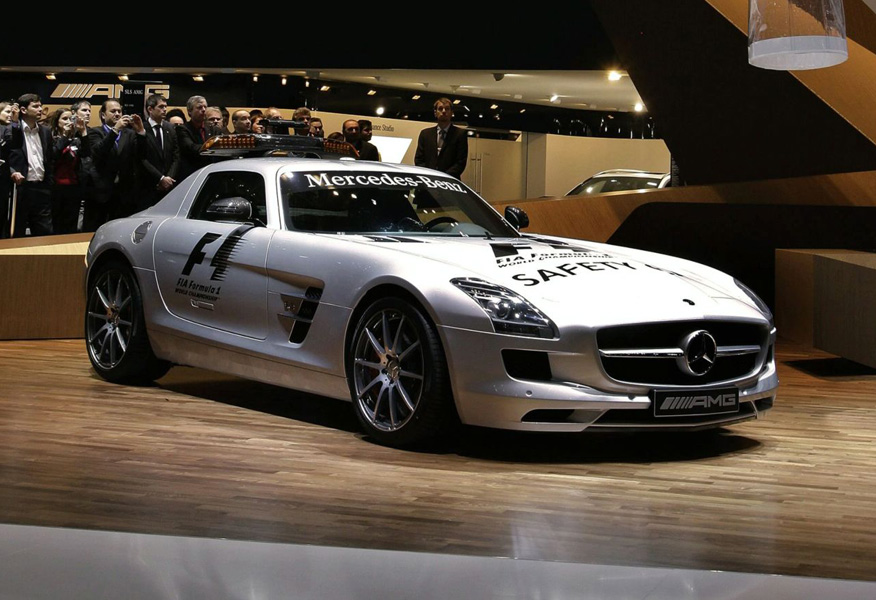 SLS AMG F1 разработан, чтобы прийти на смену автомобилю безопасности SL 63 AMG, который хорошо себя зарекомендовал в период 2008-2009г. SLS AMG F1 способен сопровождать автомобили Формулы 1 к питстопам в минимальные сроки. Он будет находиться недалеко от опасных участков трасс, чтобы в случае происшествий незамедлительно приступить к выполнению своих обязанностей.
