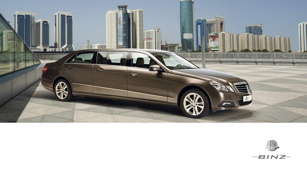 Знаменитый производитель лимузинов Binz на этот раз использовал для нового лимузина W212 в качестве основы Mercedes-Benz E-Class. Mercedes был вытянут на 1.13 метра и достиг почти 6 метров в лину, что вполне достаточно для дополнительных сидений и дверей.