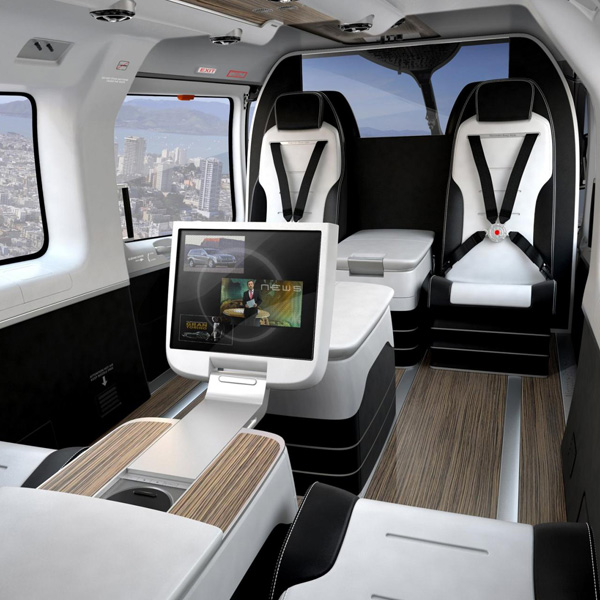 Вертолёт Eurocopter EC145 был представлен на прошлой неделе в Женеве на Европейской выставке авиации для бизнеса. Интерьер вертолёта включает плоский экран в центре салона, кожаные кресла и модульный дизайн, позволяющий трансформировать пространство внутри для нужд пассажиров или грузоперевозок. В дополнение к деревянному покрытию пола и потолка, внутри кабины используется освещение вдохновлённое моделями автомобилей Mercedes Е- и S-класса.