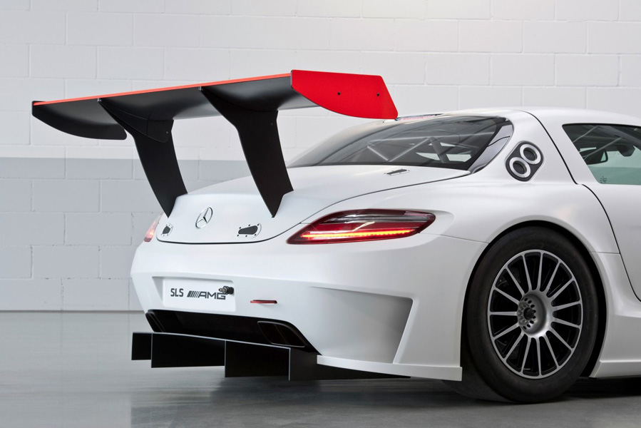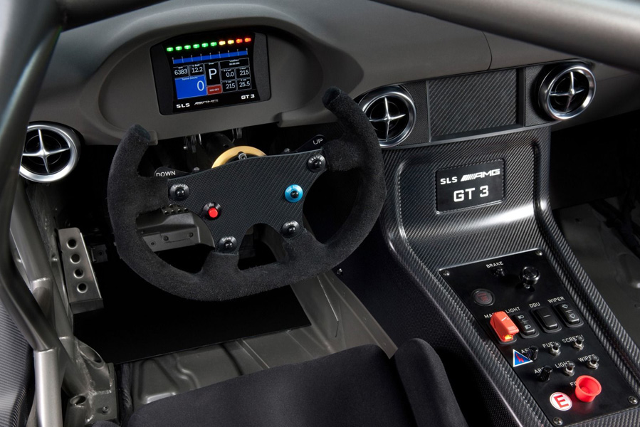 SLS AMG GT3 готовится принять участие в гонках в будущем году. На этот раз дизайнеры порадовали общественность новыми передними сплиттерами из карбона, вентиллируемым капотом, массивным задним диффузором и ненормально большим задним антикрылом. AMG в свою очередь установили на автомобиль специавльную гоночную тормозную систему, 6-скоростную трансмиссию и рулевое колесо, оснащённое кнопками для управления рацией и светом.