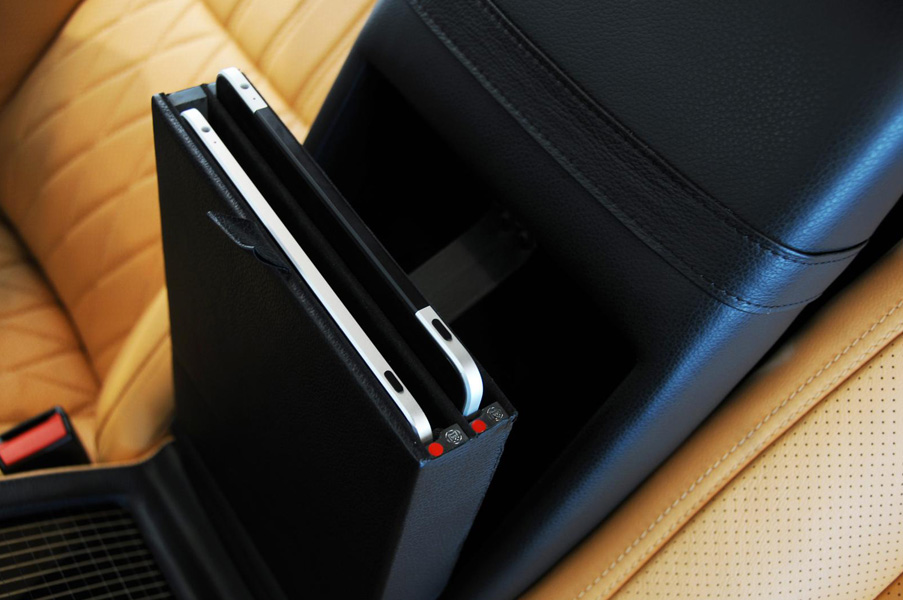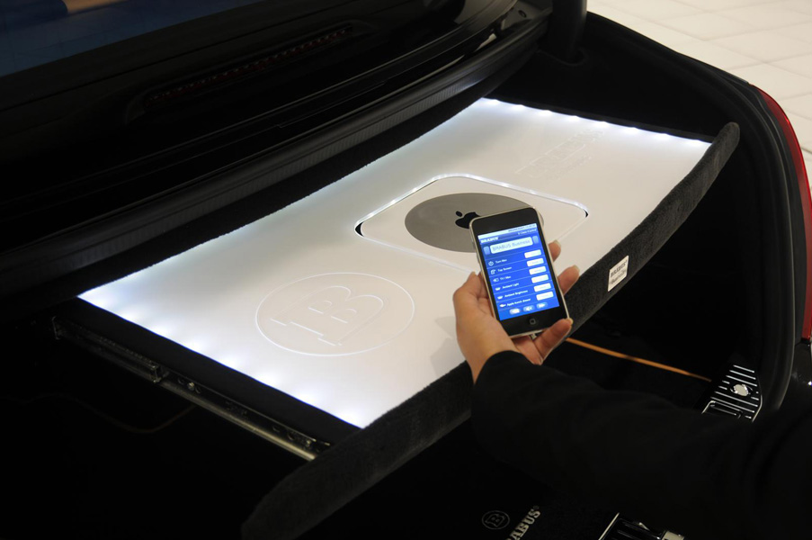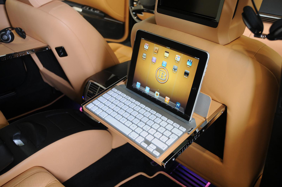 Но главные сюрпризы, как всегда, поджидают владельца внутри салона. Brabus оснастили его по последнему слову технологий. Начать можно с двух АйПадов с клавиатурой, работающей через Bluetooth, которые подключены напрямую к системе управления Mercedes. Затем, следует обратить внимание на Mac Mini, 64-гигабайтный iPod, 15.2-дюймовый дисплей TFT и возможность подключиться к сети интеренет через UMTS/HSDPA. Кожаный салон, подголовники обтянутые алькантарой, автоматические занавески, деревянная отделка, спортивный руль и аллюминивые педали: вот далеко не полный перечень приятных мелочей, которые вы обнаружите внутри салона.