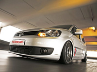 | | Volkswagen Caddy не вызывает ни у кого в Европе особого удивления, так как повсеместно используется в качестве небольшого коммерческого автомобиля, поэтому идея тюнинга подобного транспортного средства придёт в голову далеко не каждому. И совсем не удивительно, что автомобиль на шасси Golf V использует сзади рессорную подвеску, а не модную нынче независимую подвеску колёс. Но всё это не остановило... | |