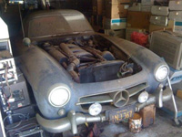 | | Ещё одни классический автомобиль был обнаружен в старом гараже. На этот раз им оказался Mercedes-Benz купе 300 SL 1955 года выпуска – один из 29 автомобилей, вырущенных под заказ в Штуттгарте.