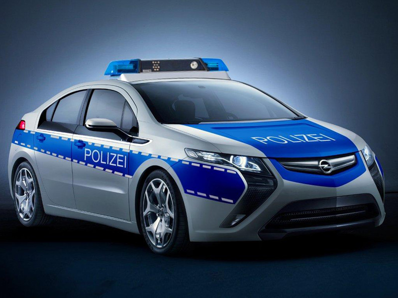Германский автопроизводитель начинает продажи Ampera германской полиции. Автомобиль раскрашен в полицейские цвета и преподносится как превосходный патрульный автомобиль.