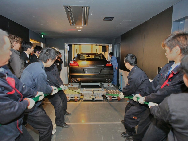 Поднятие на такую высоту обычно требует либо тяжелых кранов, строительных лесов или вертолета. Организаторы пошли с другим путем. Они упаковали пятиметровый Porsche вертикально и подняли на лифте.