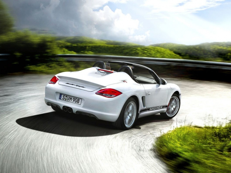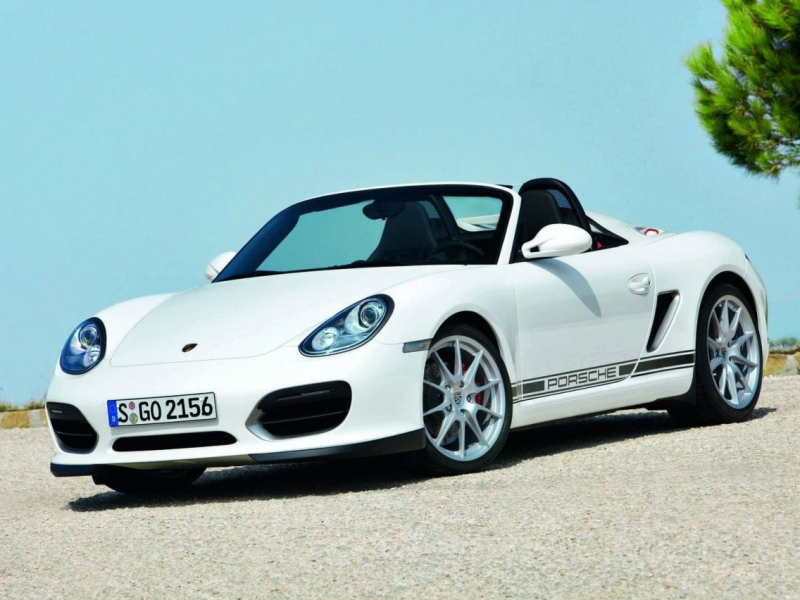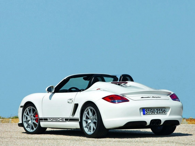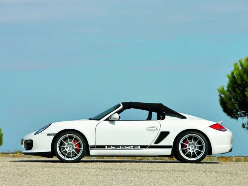Расположенный на фотографии Boxster S, Spyder получил на 10л.с. больше и теперь мощность составляет аж 320л.с., весит это чудо на 80 кг меньше 1278 кг. На Spyder Boxster установлен 3.4-литровый плоско расположенный двигатель V-6 с прямым впрыском. Разгон до сотни происходит уже через 4.6 секунды с максимальной скоростью 255 миль в час и это с поднятым верхом.