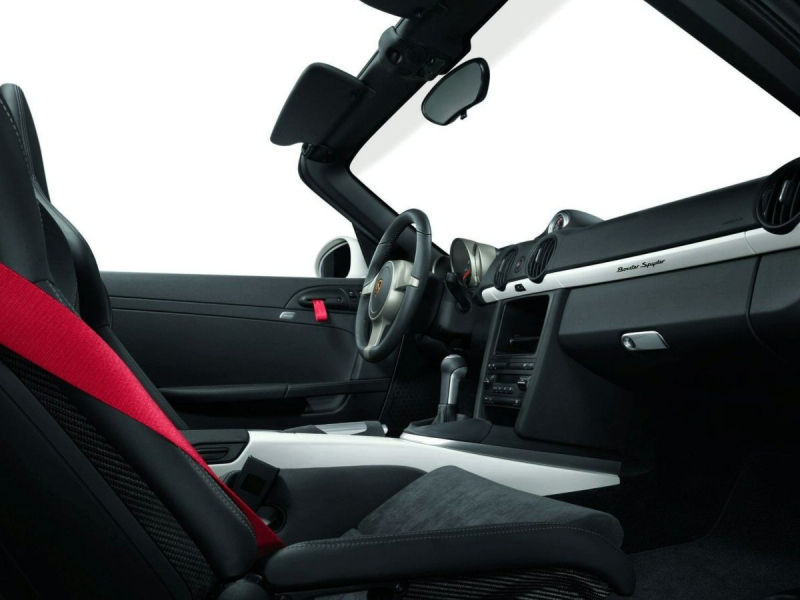 Другие изменения дизайна включают передние и задние бамперы, 10-спицевые литые диски, и переделанные воздухозаборники. Внутри, родстер имеет эксклюзивный интерьер со спортивными сиденьями, "Boxster Spyder" также предлагает раскрашенную под цвет корпуса приборную панель.