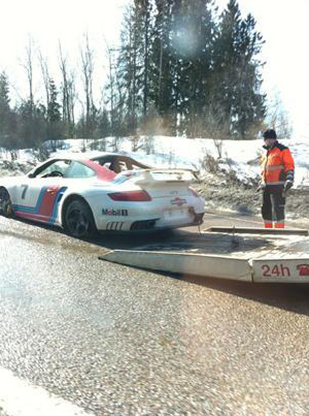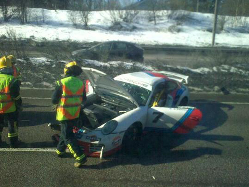 Авария недалеко от Хельсинки2011-04-06На фотографии можно видеть Porsche 997 GT2, которая потерпела аварию в результате несчастного случая в Финляндии. К счастью, серьёзно никто не пострадал. |