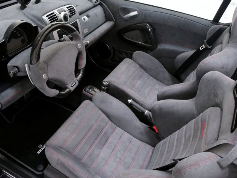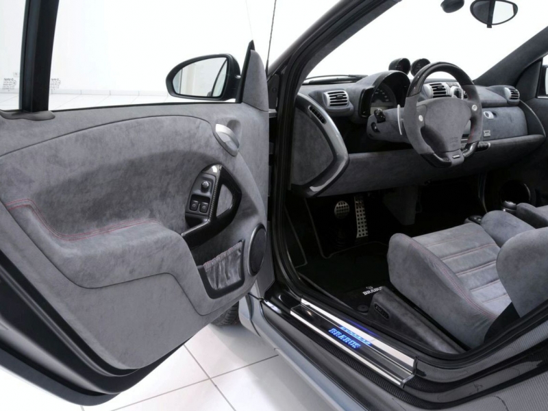 Делая Smart более привлекательным на вид, Brabus добавили элементы из углеволокна снаружи и внутри и покрасили автомобиль в серый металлик. Затемненные двуспицевые диски сзади шире, чем спереди, и обуты в шины высокой эффективности. Двойной глушитель из нержавеющей стали с алюминиевыми наконечниками от Brabus также включен в комплект. Спортивные сиденья от Alcantara - интересное дополнение к автомобилю, который, как предполагается, является бюджетным.