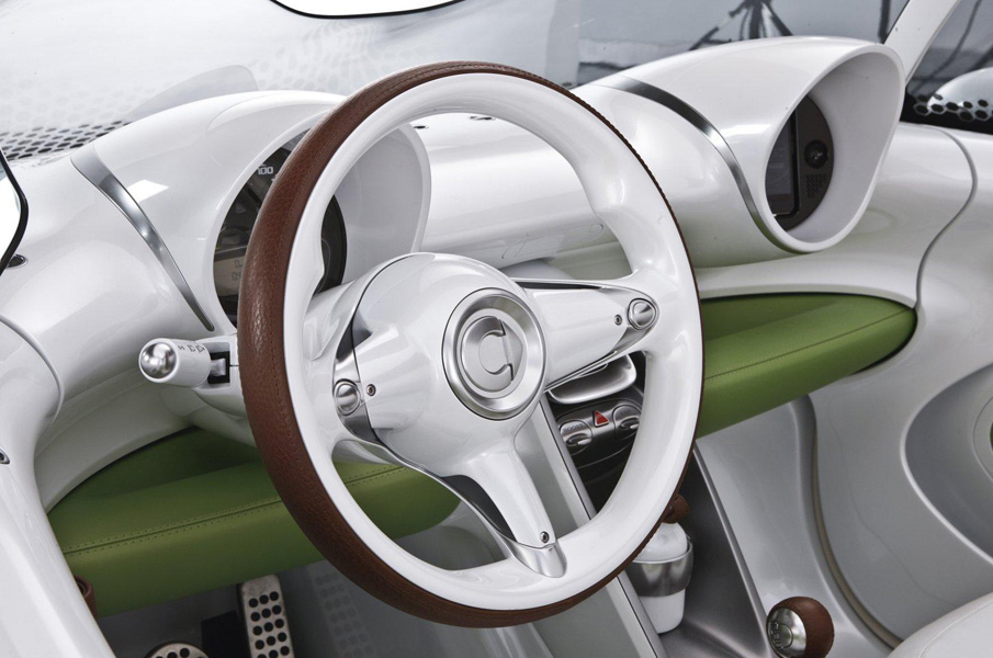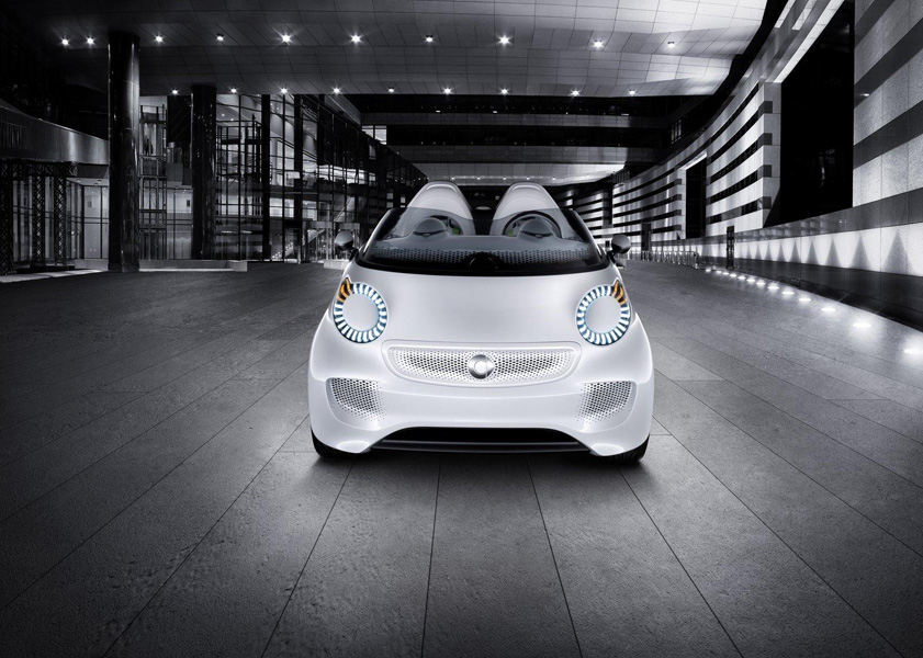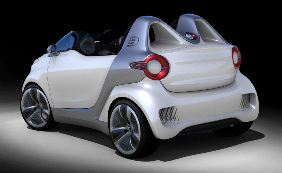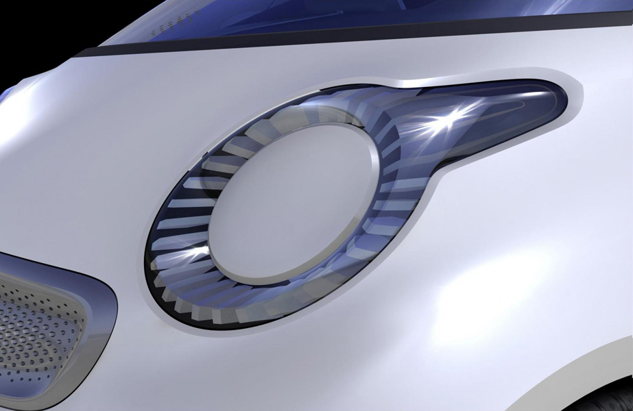 Решётка радиатора имеет структуру сот, снаружи также установлены светодиодные фары, фотоэлектрические солнечные ячейки в основании лобового стекла и спрятанная под задним бэйджем Smart розетка, ведущая к литий-ионной батарее.