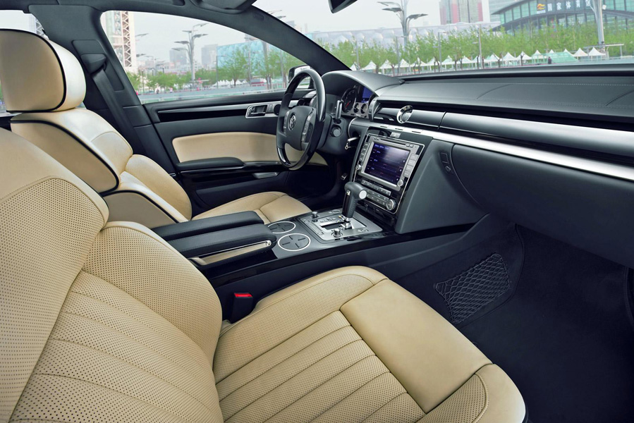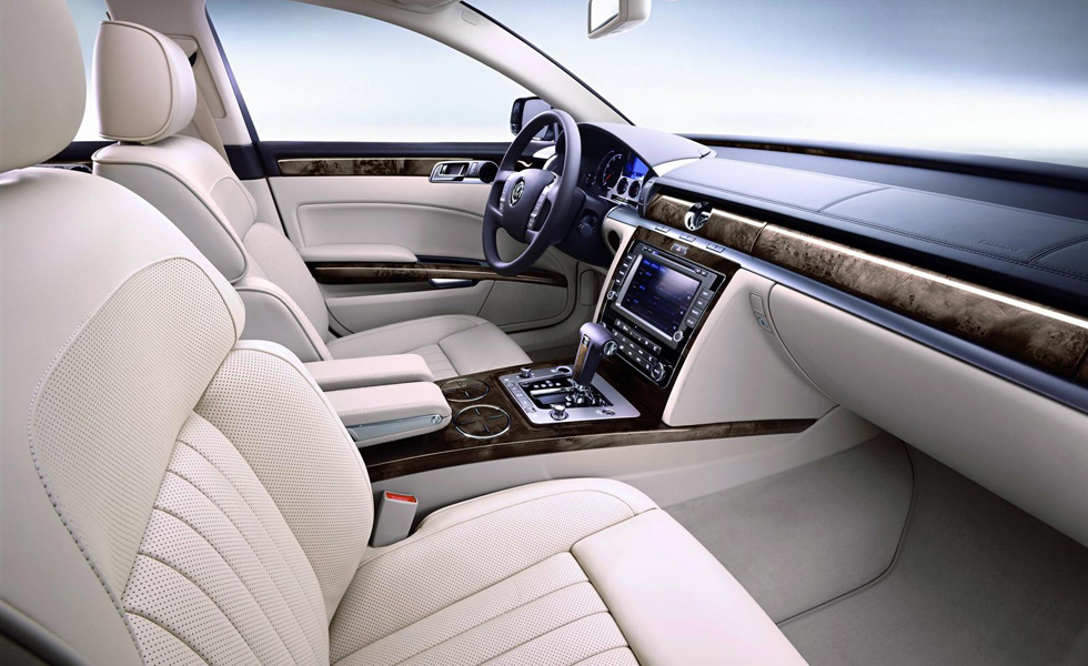Находясь в салоне, водитель сможет полностью вкусить от эксклюзивной начинки Phaeton: кожа, дерево и алькантара, 18 положений переднего кресла, а опционально можно поставить регулировку задних индивидуальных кресел. Раздельный четырёхзонный климат-контроль позволит любому чувствовать себя комфортно внутри салона, а водитель на себе ощутит преимущества новой тормозной системы, системы динамического регулирования света фар, спутниковой навигации и информационной системы. Очень удобно то, что информационная система сможет обновлять себя сама через мобильный телефон.