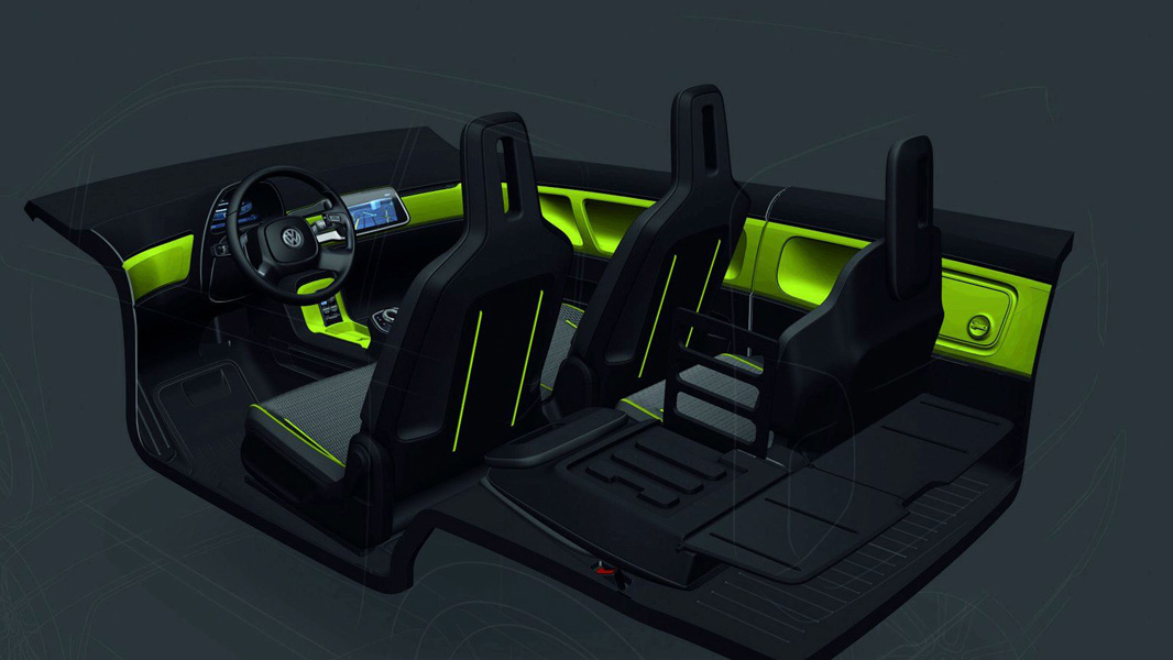 Концепт E-Up! являет собой переднеприводной мини электромобиль, оснащенный 60-киловатным мотором, питающимся от литий-ионных батарей. В начальной стадии планируется выпускать 3-х и 5-дверные варианты хэтчбэк, однако, в случае успеха, планируется запуск минивэна Space Up! на базе платформы Audi A2. Volkswagen планируют, что запас хода автомобиля составит 130км, ускорение до 50 км/ч будет происходить за 3.5 с, а максимальная скорость будет достигать 134 км/ч. Но в наше время с трудом верится цифрам, когда речь заходит об электромобилях, поэтому в реальных условиях такой запас хода вряд ли будет достигнут.