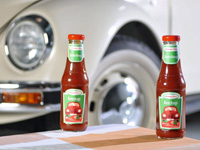 | | Volkswagen порадовал автомобильных гурманов новым продуктом, который был представлен на выставке Техно Классика в Ессене - самой большой выставке классических автомобилей в Европе. Бутылки с кетчупом Volkswagen Classic будут продаваться по цене €3 за штуку. Выпуск пока ограничится партией в 1000 бутылок.